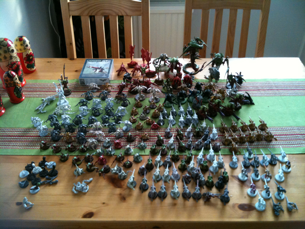 Då var det dax att göra sig av med lite kryp. det är en väldigt stor arme som man kan göra många olika listor med, jag har haft väldigt roligt med åren när jag har spela dom. men då jag inte spelar så mycket 40k just nu så ser jag ingen mening med att ha dom här hemma.