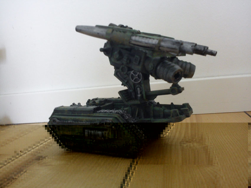 Spelade en match i måndags. Mina IG blev helt ägda. Min motståndare tyckte att jag saknade allt vad som gör IG bra. Eftersom andra också har uttryckt den åsikten så gick jag upp på vinden för att leta upp något som kunde bli en Manticore missile launcher. Den är nu byggd och grundmålad.