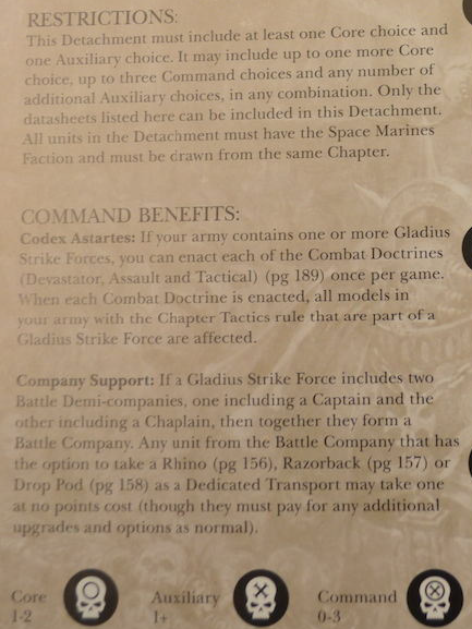 "If Gladius Strike Force includes two Battle Demi-companies, one including a Captain and the other including a Chaplain, then together they form a Battle Company."