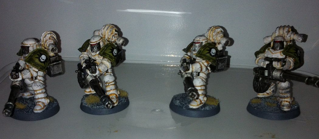 Varför washar du dom så tungt efter sprayningen? dusta lite vit spray efter den första grundsprayen.. Sen en försiktig utvattnad washning och modellernas grundfärg skulle bli super nice!